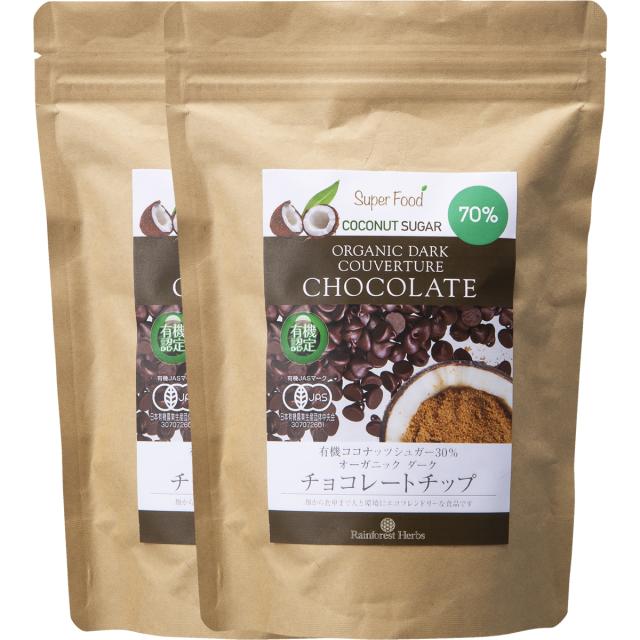有機カカオ70% チョコチップ 500g 2袋 ペルー産 クーベルチュール 有機JASオーガニック 有機ココナッツシュガー カカオ70%以上 チョコレートチップ チョコレート