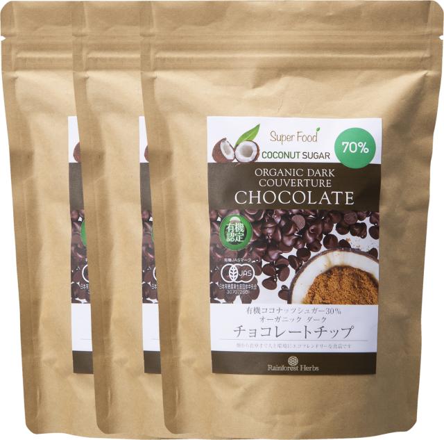 有機カカオ70% チョコチップ 500g 3袋 ペルー産 クーベルチュール 有機JASオーガニック 有機ココナッツシュガー カカオ70%以上 チョコレートチップ チョコレート