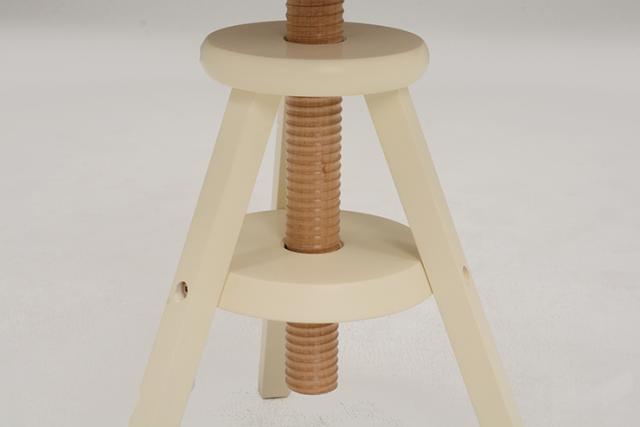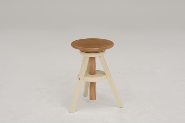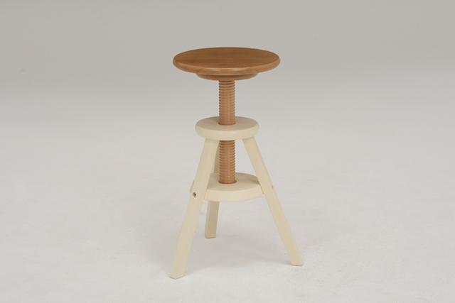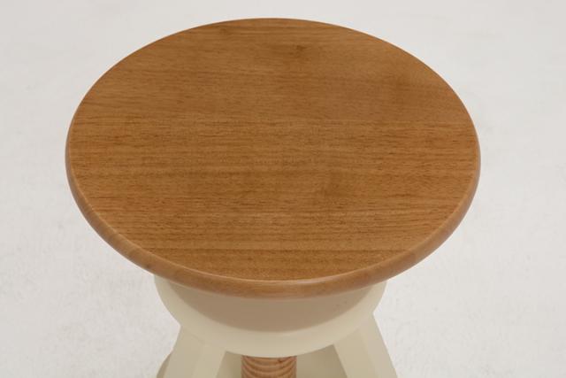 座面を回転させると高さが調節できるスツール。天然木を使用しインテリアとしてもお部屋になじみます。