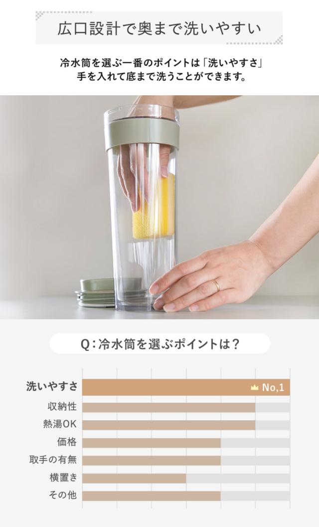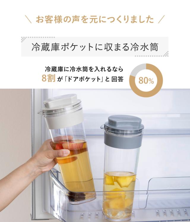 冷蔵庫のポケットにぴったり入る!横置きも可能なスリムジャグ