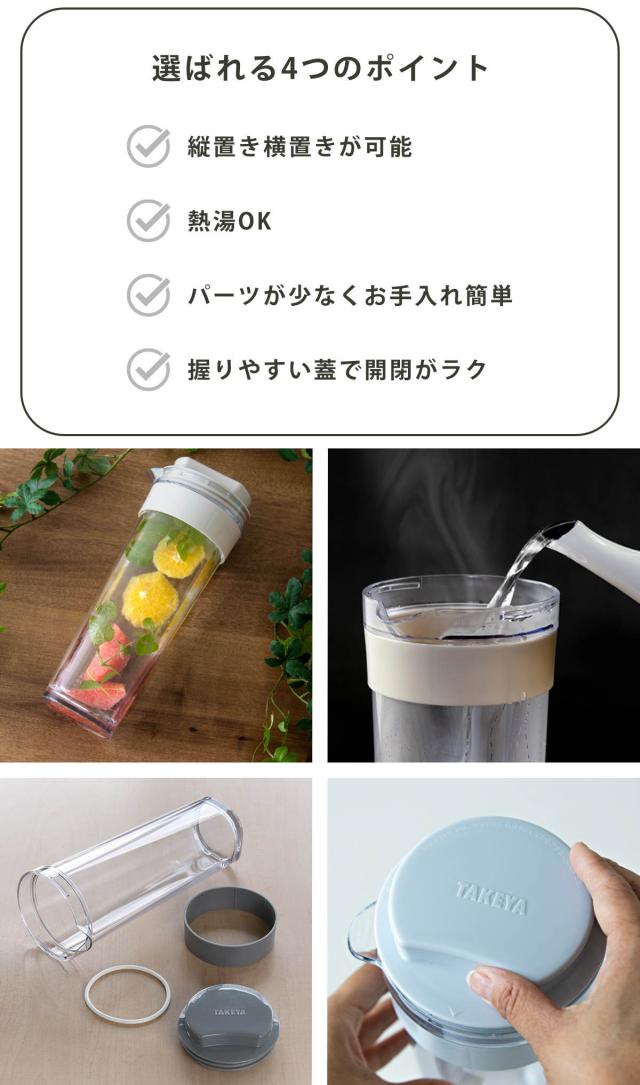 | パーツ別耐熱温度 | 本体:100度、蓋・スリーブ:120度、パッキン:140度 |