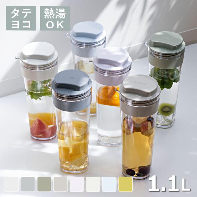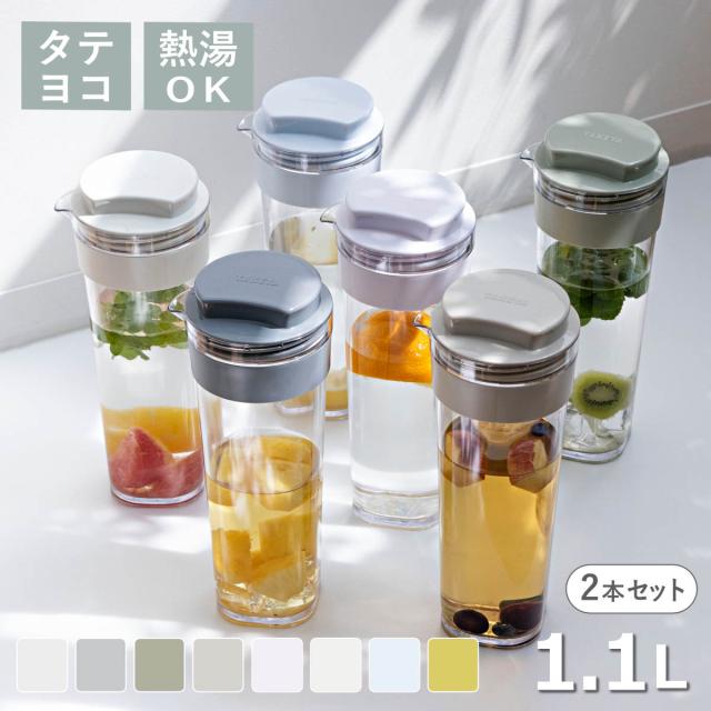 冷水筒 スリムジャグ 1.1L 横置き 縦置き 耐熱 日本製 同色2本セット ( 麦茶ポット ピッチャー 水差し 熱湯 白 麦茶 冷水ポット 約 1リットル プラスチック モノトーン )