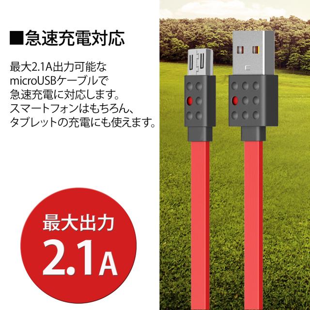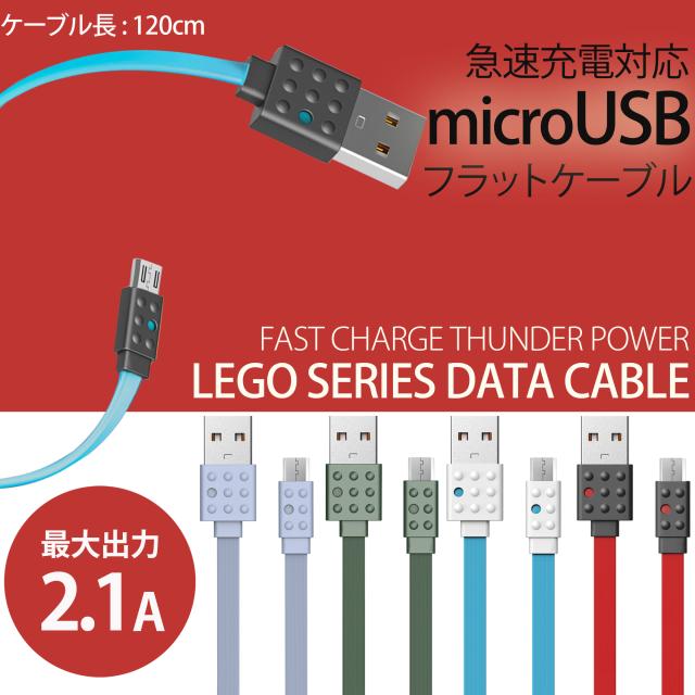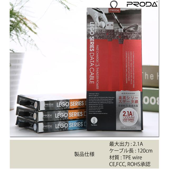 REMAX スマホ microUSB 急速充電 転送ケーブル リマックス 2.1A 1.2m PRODA LEGO ブルー PC-01m フラットケーブル 丈夫 掴みやすい
