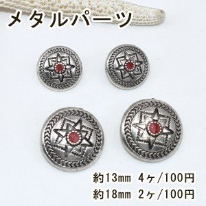 メタルパーツ ボタンパーツ コンチョ5 スター アンティークシルバー/レッド