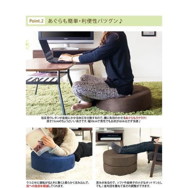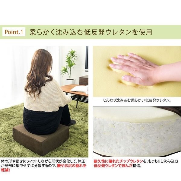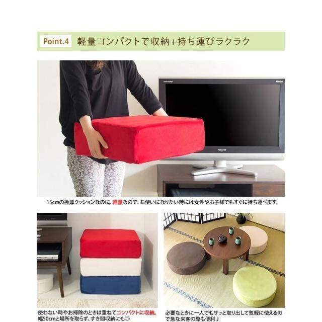 分厚く存在感のある座布団は、低反発ウレタンを使用した15cmの極厚クッション