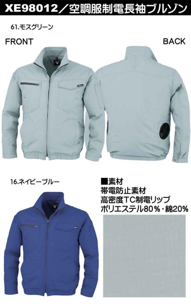 [激安セール][送料無料]空調服 ジーベック XEBEC 制電長袖ブルゾン(ファンなし) XE98012A(旧モデル)