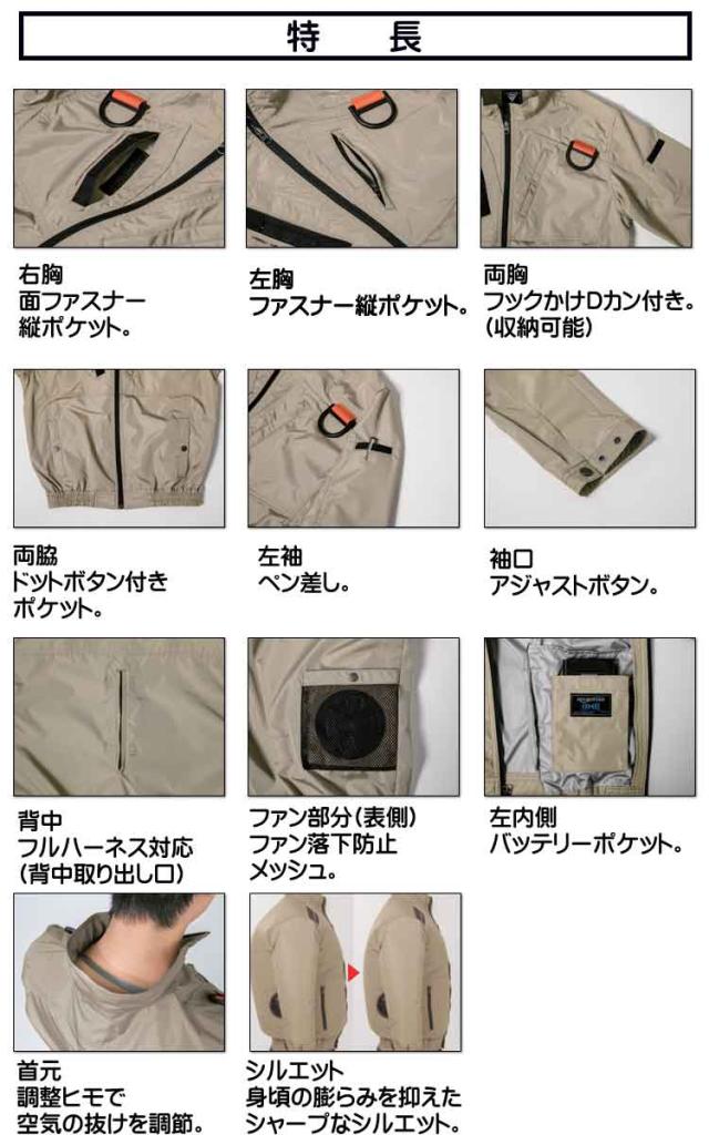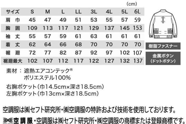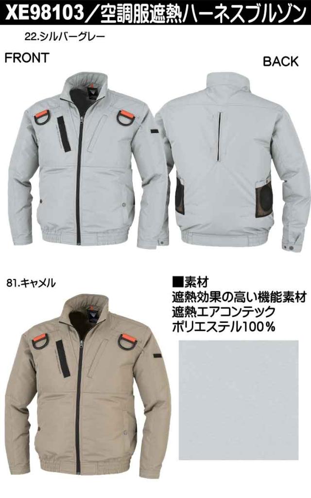空調服 ジーベック XEBEC 遮熱フルハーネス長袖ブルゾン(ファンなし) サイドファン XE98103