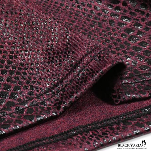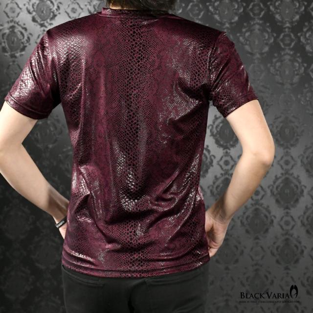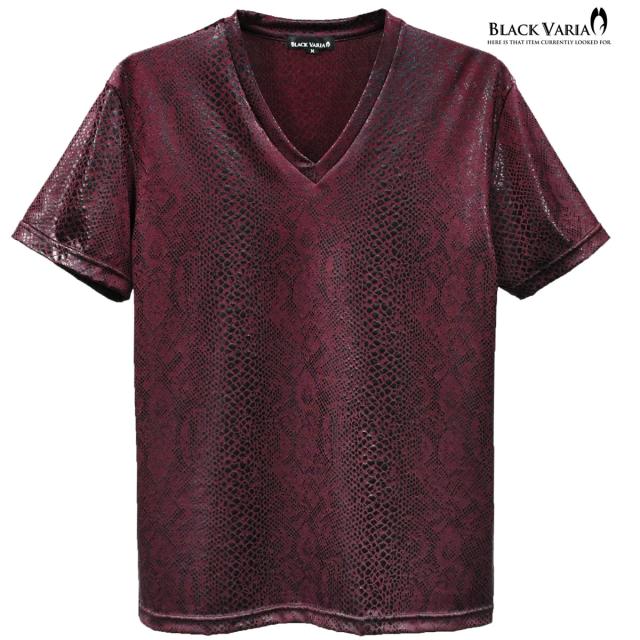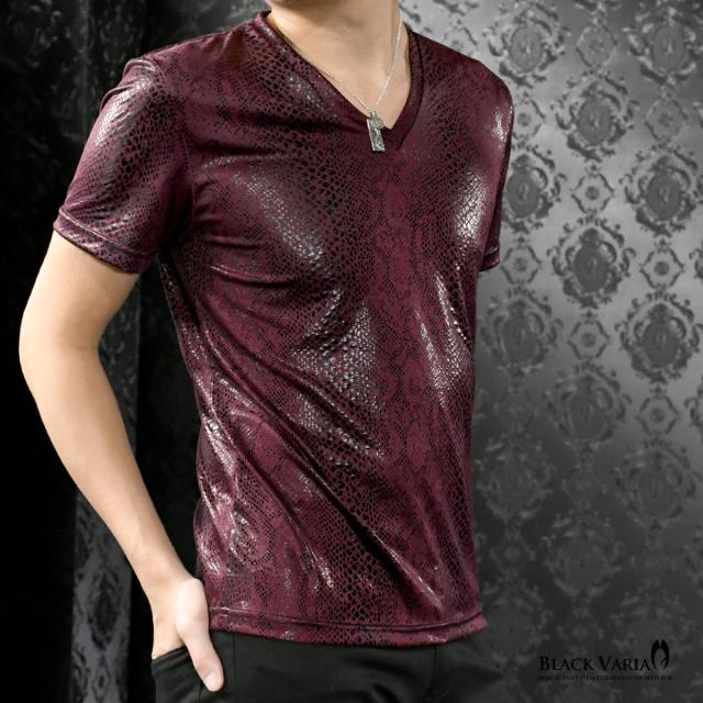 メール便可/一枚まで Tシャツ 半袖 Vネック パイソン柄 蛇 メンズ 日本製 派手 ストレッチ ファッション おしゃれ(ワイン赤レッド) 183703