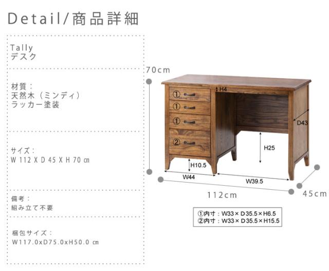 Tally タリー デスク (机 PCデスク パソコンデスク レトロデザイン ブラウン 天然木 北欧 カントリー)