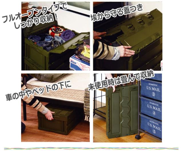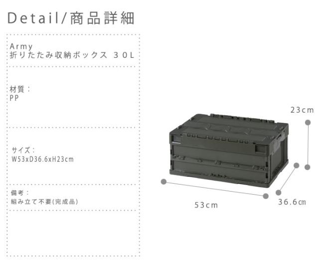 Army アーミー 折りたたみ収納ボックス 30L (コンテナ 折りたたみコンテナ 折りたたみ 折り畳み 収納 アメリカン 軍隊 緑 国産)