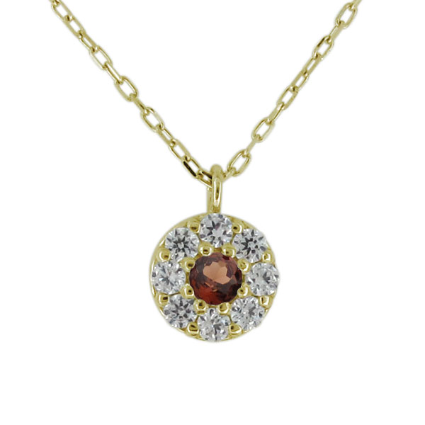 ネックレス レディース 20代 30代 40代 パヴェ サークル ガーネット 1月誕生石 10金