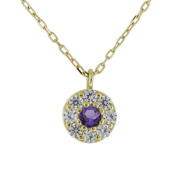 ネックレス レディース 20代 30代 40代 パヴェ サークル アメジスト 2月誕生石 10金