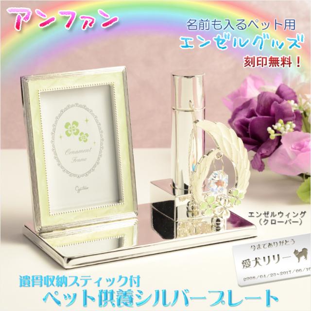 ペット供養・名前刻印【アンファン・シルバープレート:エンゼルウィング(クローバー)】ペット仏具 送料無料