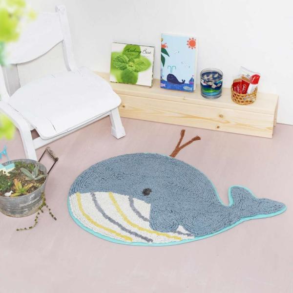 お部屋を楽しげに泳いでいるようなクジラのシェイプマットです。
