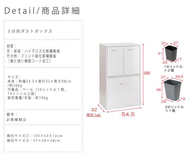 幅54.5cmのスリムな3分別。一人暮らしなどのワンルームには3分別が便利。