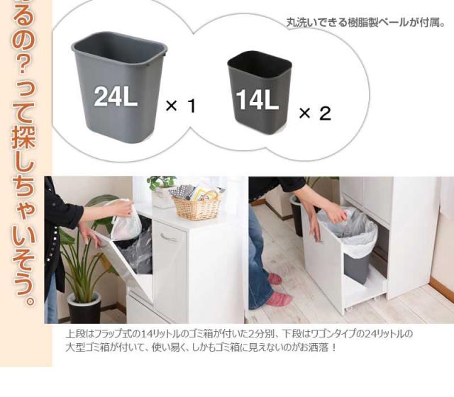 上段はフラップ式の14リットルのゴミ箱が付いた2分別、