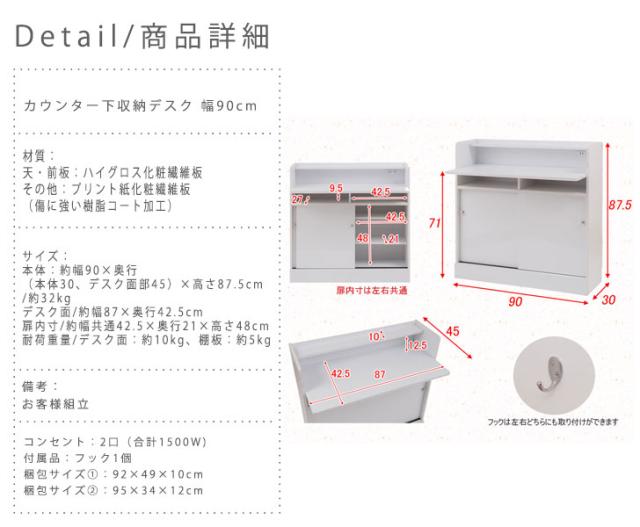 Face フェイス カウンター下収納デスク 幅90cm (キッチン収納 カウンター下 デスク 作業台 シンプル ホワイト 白 ナチュラル)