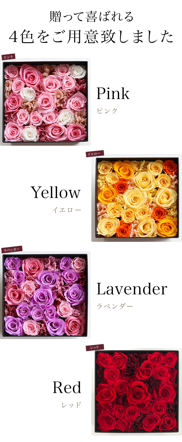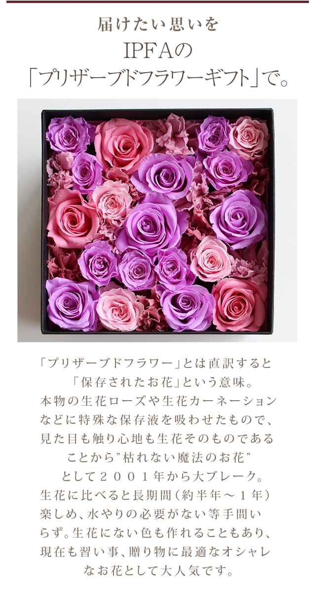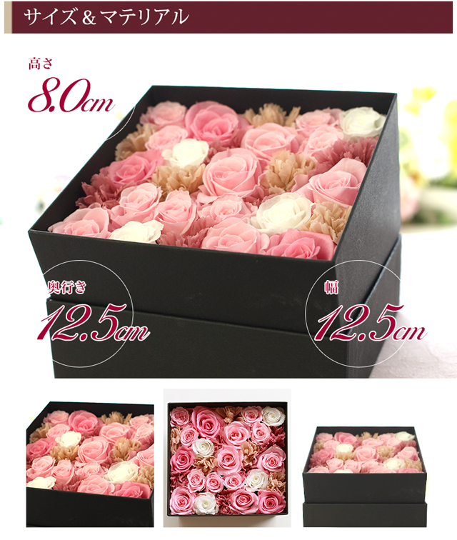 プリザーブドローズ、プリザーブドカーネーション、ボックス(紙製)