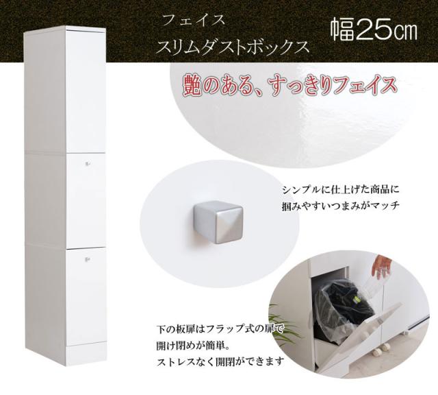 Face フェイス 2分別 スリムダストボックス (キッチン収納 隙間収納 ゴミ箱 くず入れ シンプル ホワイト 白 ブラウン ナチュラル)