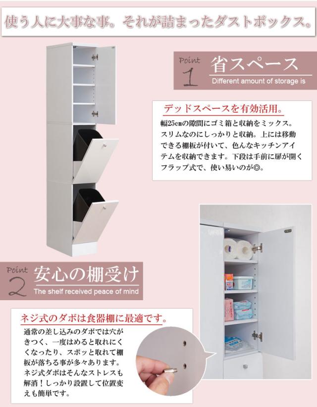 場所をとらない、省スペース設計の隙間収納に、2分別ダストボックスをミックス。