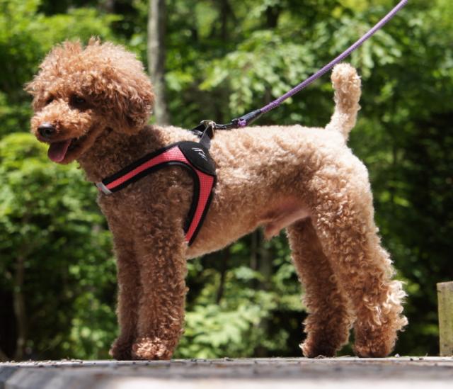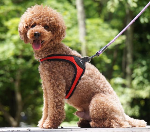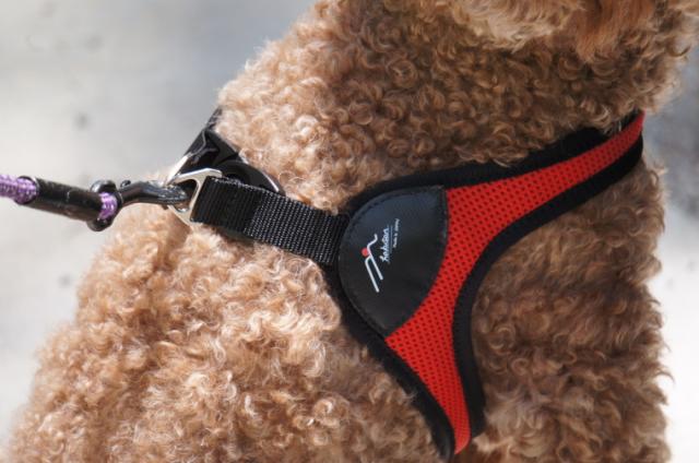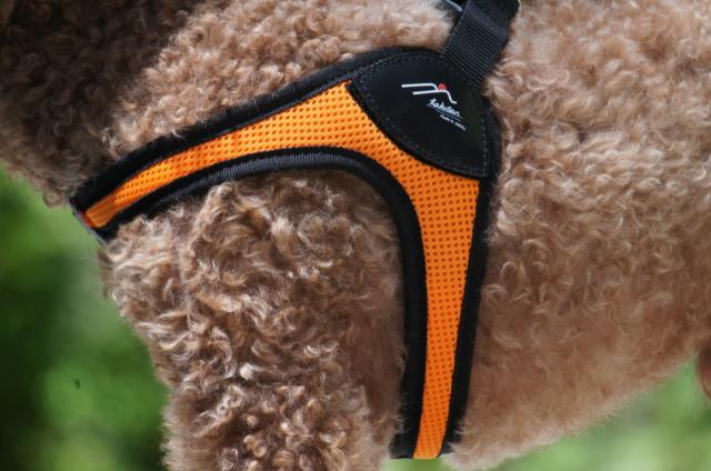今回のハーネスは、シンプルでメッシュ部分が
