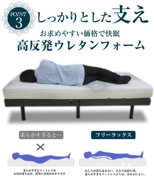セミダブル ウレタン フリーラックス 高反発マットレス 電動ベッド対応 アジャスタブルベッド対応
