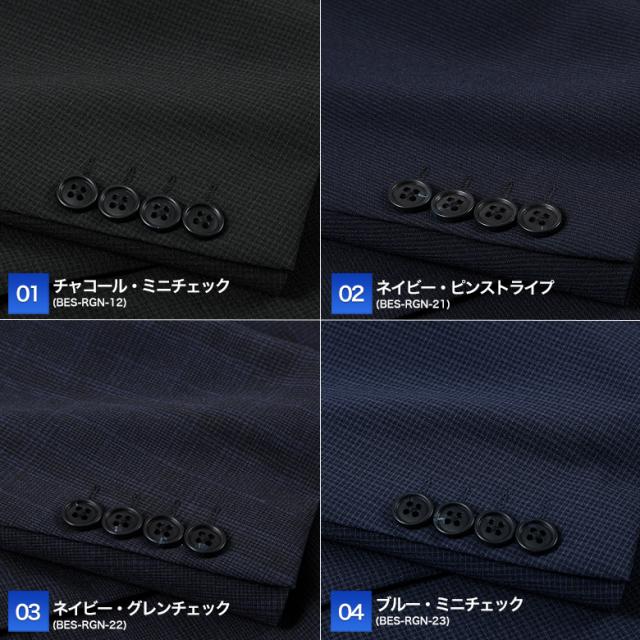 | 【26-A】ブラック・ブルーストライプ(BFS-RGN-A-11) 【26-B】ネイビー・ストライプ(BFS-RGN-A-23) 【26-C】ブルー・バーズアイ(BFS-RGN-A-27) 【26-D】グレー・メランジ(BFS-RGN-A-31) 【01】チャコール・ミニチェック(BES-RGN-12) 【02】ネイビー・ピンストライプ(BES-RGN-21) 【03】ネイビー・グレンチェック(BES-RGN-22) 【04】ブルー・ミニチェック(BES-RGN-23) 【05】グレー・ピンストライプ(BES-RGN-30) 【06】グレー・グレンチェック(BES-RGN-31) 【A】グレー・千鳥格子(BDS-RGN-31) 【B】ブラック・ピンチェック(BDS-RGN-14) 【H】チャコール・ウインドーペン(BDS-RGN-30) 【I】ブラック・シャドーストライプ(KSY-RG24-10) 【J】ネイビー・シャドーストライプ(KSY-RG24-21) ※2026年2月より新たな色柄を追加して発売しております |