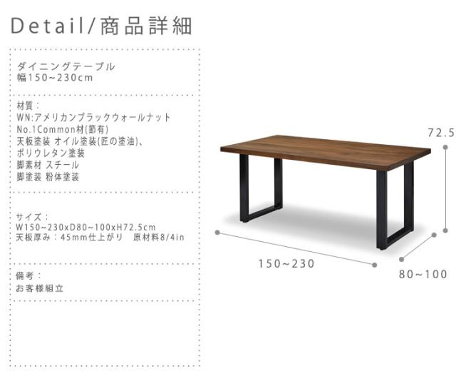 サイズ:W150~230xD80~100xH72.5cm