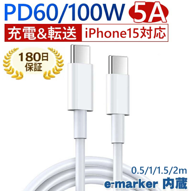 Type-C 充電ケーブル PD充電ケーブル 60W/100W 急速充電 0.5m 1m 1.5m 2m iPhone16 充電ケーブル タイプc ケーブル データ転送 e-marker 内蔵 シリコン素材 絡まないケーブル USB Cケーブル