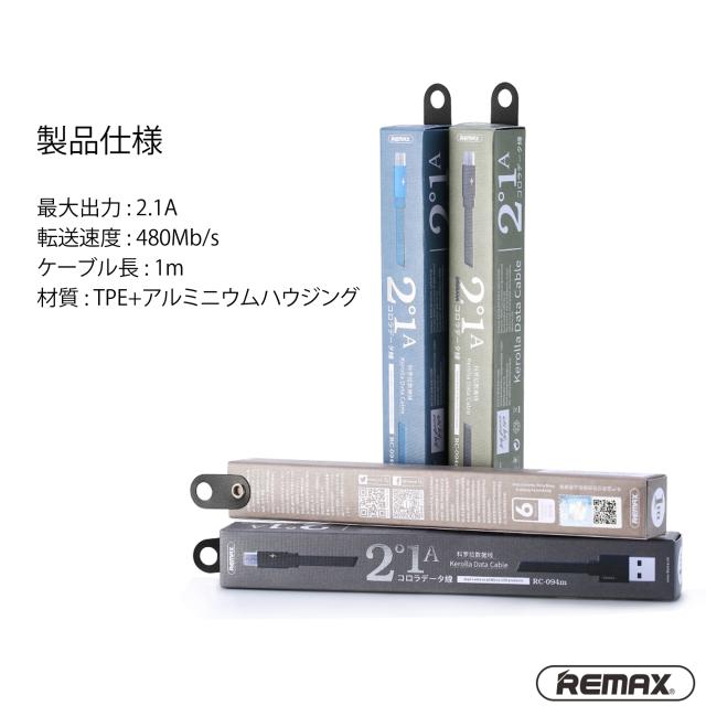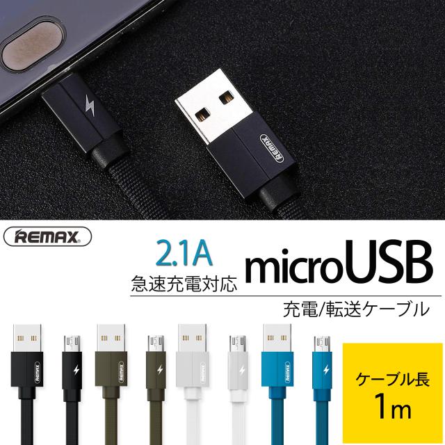 REMAX スマホ microUSB 充電 転送ケーブル リマックス 2.1A 1.0m Kerolla グリーン RC-094m