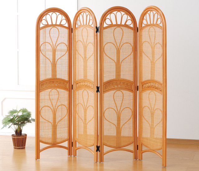 パーテーション 4連 衝立 目隠し 間仕切り ラタン 天然 籐 スクリーン 部屋 仕切り リビング 寝室 居間 送料無料