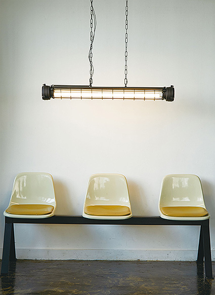1950〜1960年代にかけて、ヨーロッパの工場や公共施設などで多く使われたチューブランプ。数多くのチューブランプが製造された中で、シリンダーガラスをワイヤーカバーで囲い、固定する製造方法は最もベーシックなデザインのひとつになりました。シンプルで無駄のないデザインは、今なお多くのファンを魅了し続けています。