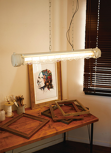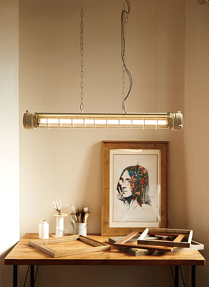 昨今人気のインダストリアル系ランプですが、大ぶりのものが多く、コンパクトスペースには向きませんでしたが、このスリムなチューブタイプなら様々なスペースに設置可能。製品本体の表面仕上げもリアルなヴィンテージ感を再現し(製品自体は新品です)こだわり派の方にもご満足いただけます。
