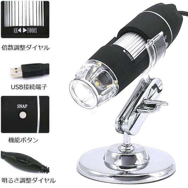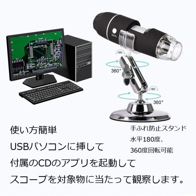USB式、1000Xの倍率、子供、学生、技術者、発明家などに幅広く適用できるパソコン顕微鏡です。