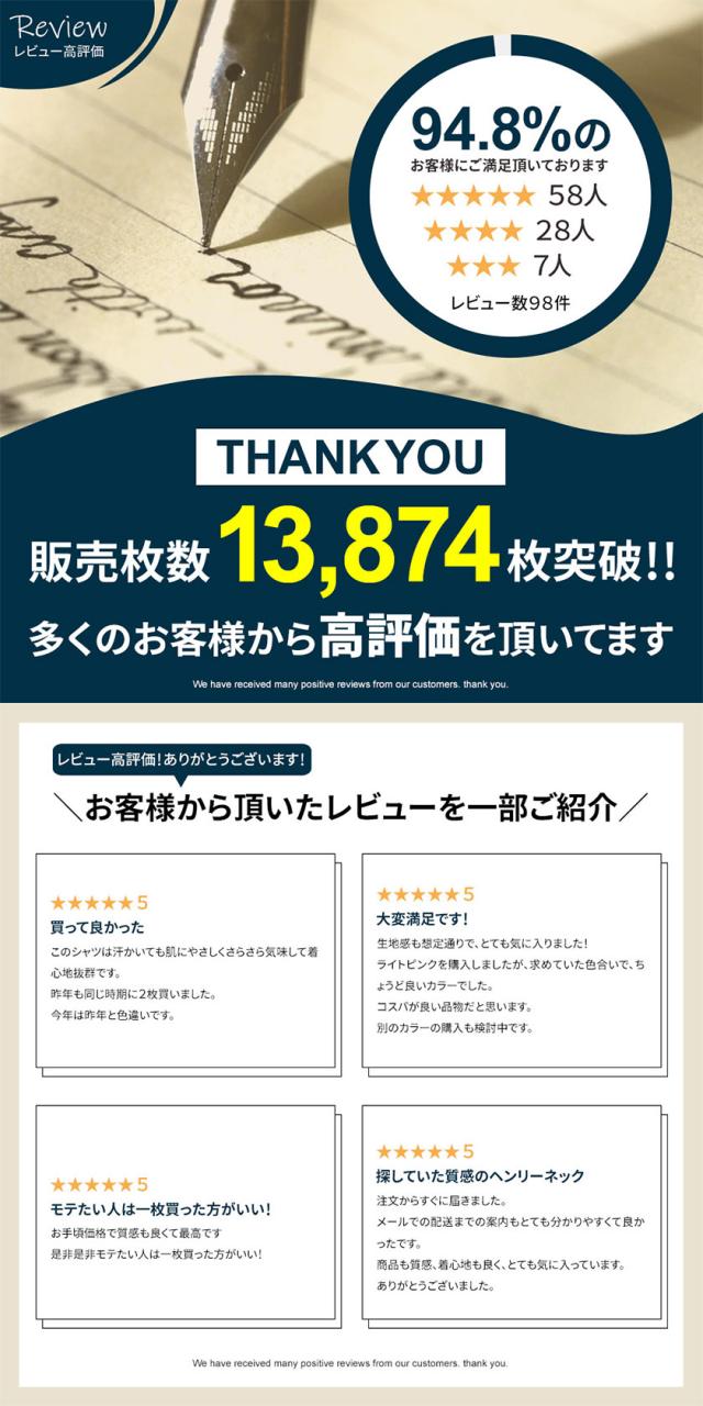 襟元は「クルーネック・Vネック・ヘンリーネック」の3タイプをご用意。