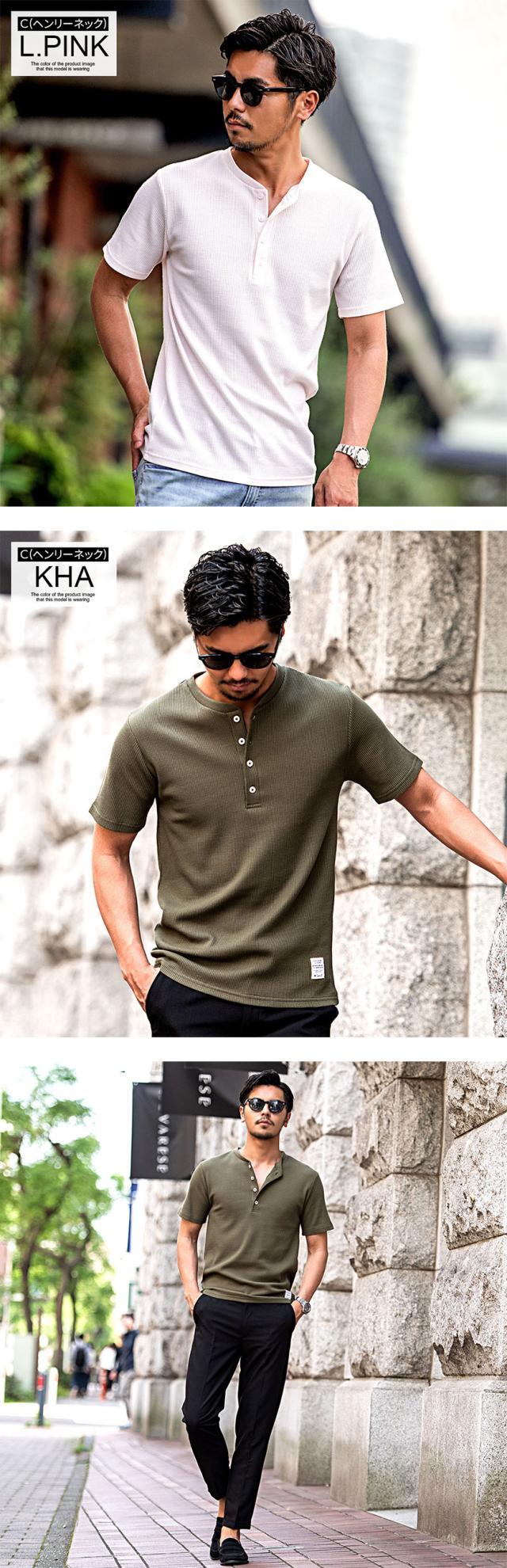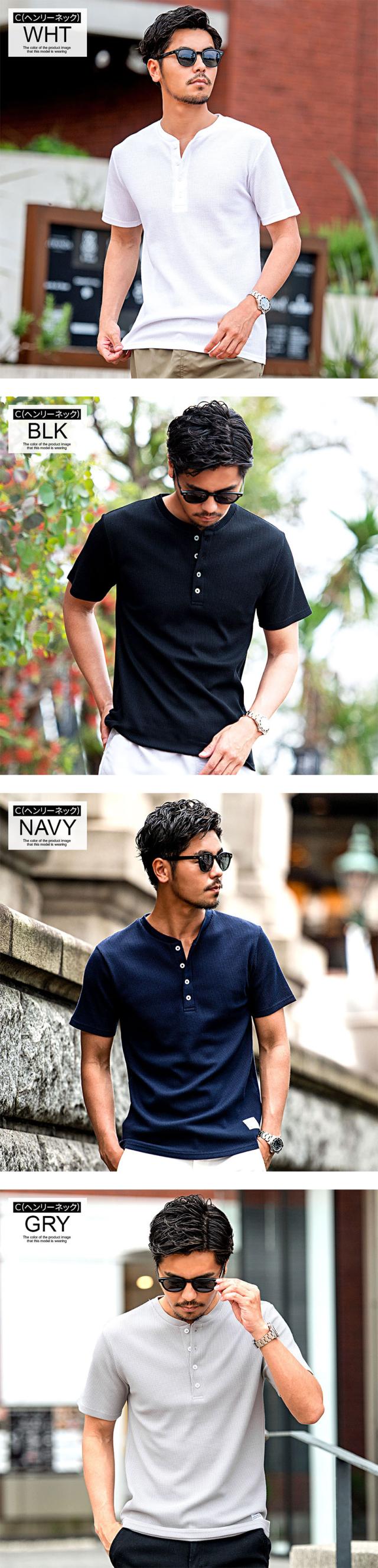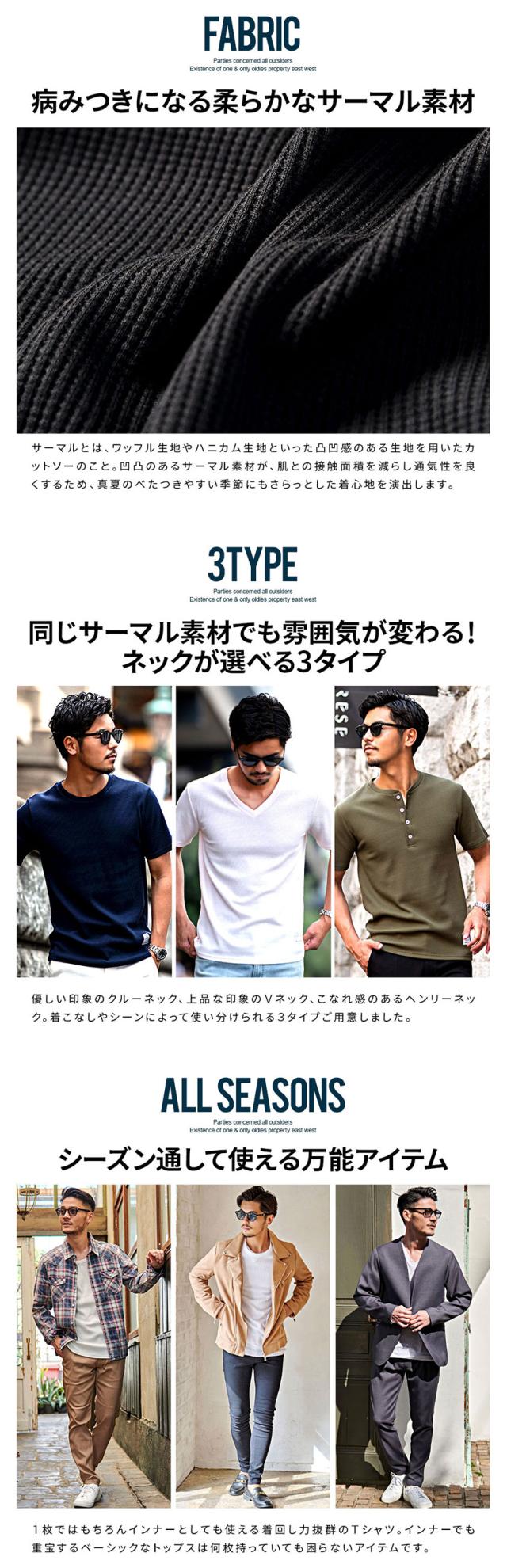 送料無料 Tシャツ メンズ 半袖 トップス インナー カットソー サーマル ワッフル クルーネック Vネック ヘンリーネック 無地 シンプル ブラック ホワイト 黒 白 M L XL BITTER系 ビター系 CavariA キャバリア 春 夏 即日発送 ゆうパケット1配送について