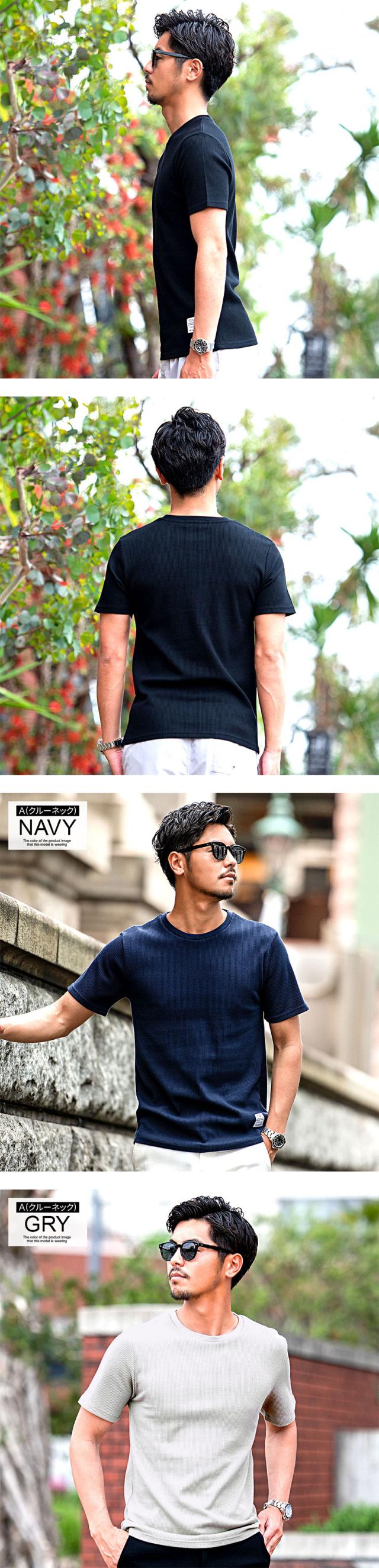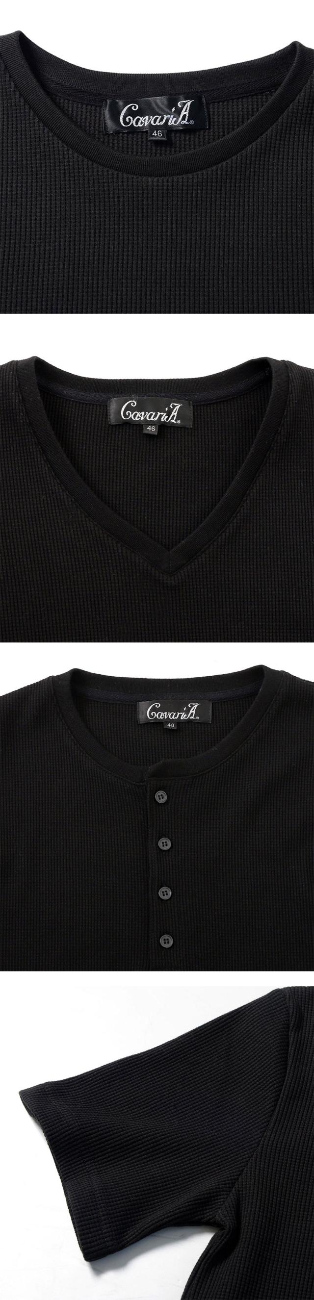【送料無料】Tシャツ メンズ ゆうパケット1 半袖 ブランド 白T 無地 トップス インナー カットソー サーマル ワッフル クルーネック Vネック ヘンリーネック ブラック ホワイト 黒 白 M L XL CavariA キャバリア 春 夏 即日発送 [CARYU17-01]