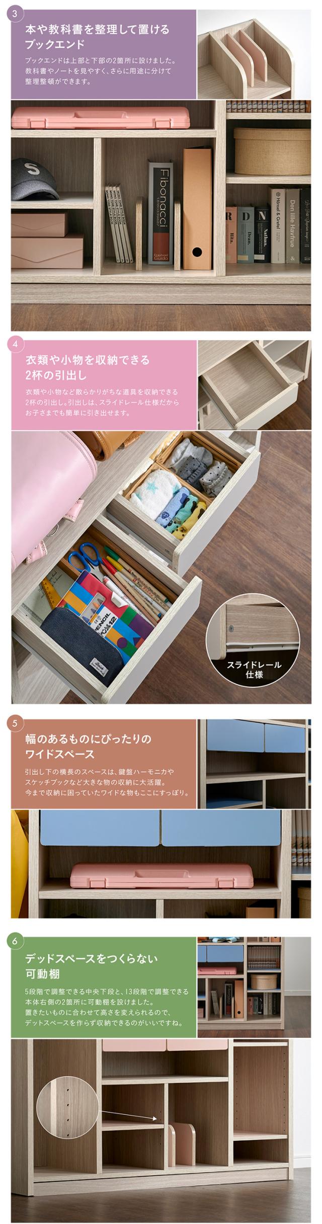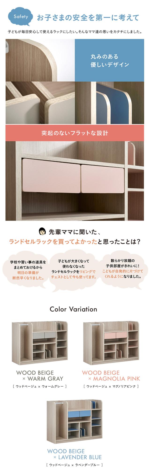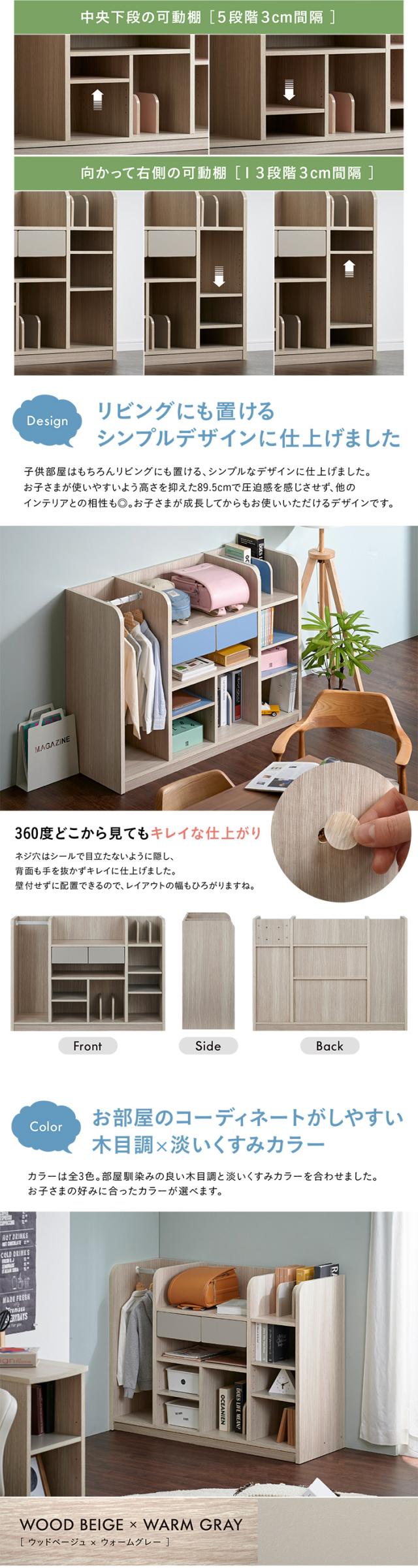 【大容量収納/ハンガーポール付き】ワイド ランドセルラック 幅124cm キャスター付き Halo2(ハロ2) 3色対応 ラック ランドセル収納 本棚 木製 リビングラック ハンガー ハンガーラック