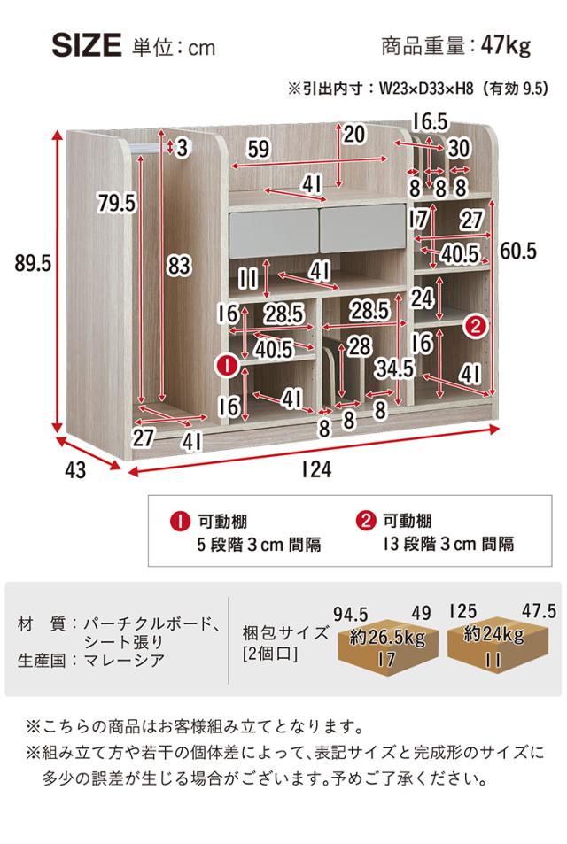 W124 × D43 × H89.5cm