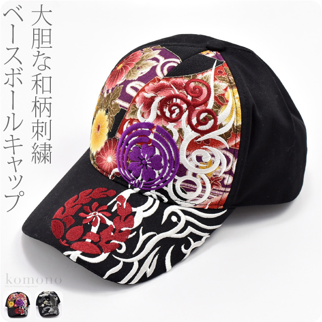 和柄 帽子 通年用 刺繍入り BBキャップ ホック式 アジャスター 海外 お土産 外国人 おしゃれ 大人 メンズ 男性10021010