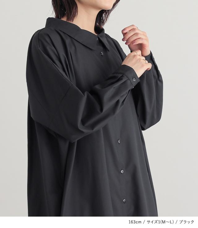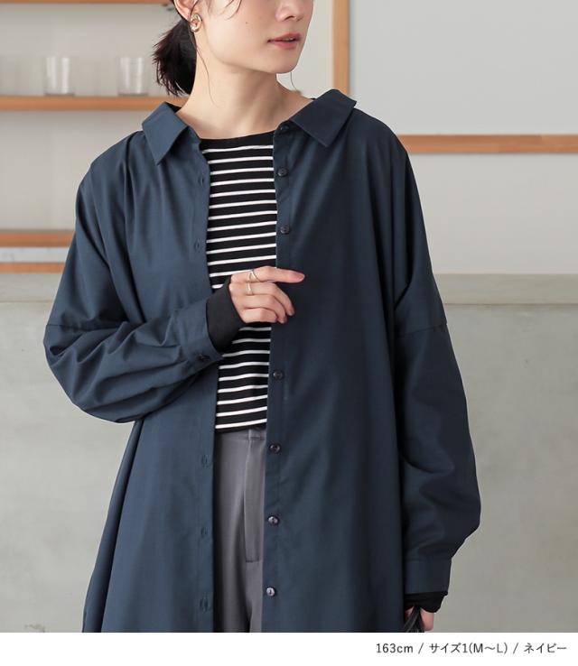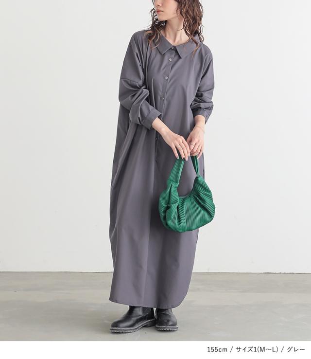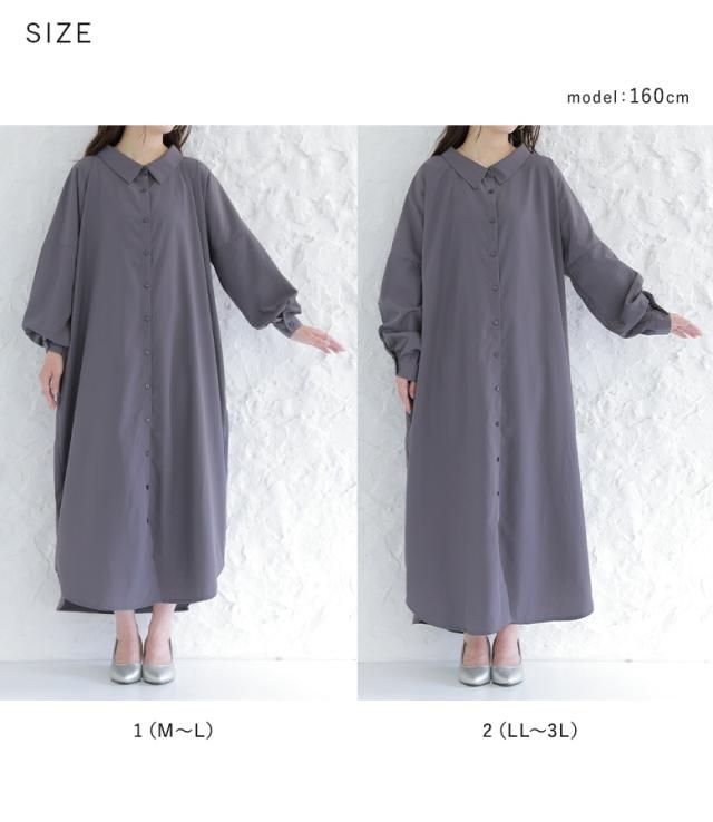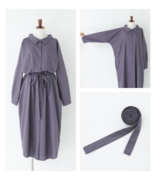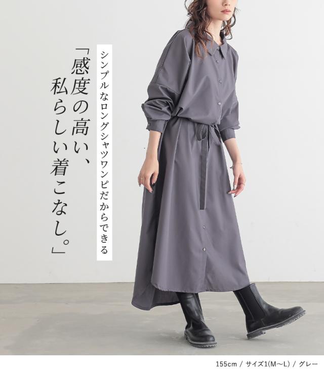 『シンプルロングシャツワンピ』 【メール便不可】【20】[シャツワンピース レディース ロング ワンピース 長袖 羽織 ウエストリボン ブラウジング シンプルシャツワンピシリーズ]