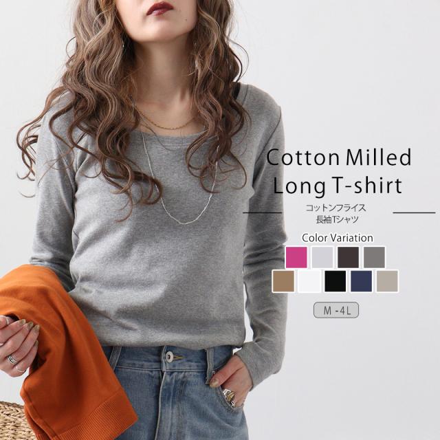 秋新作 大きいサイズ レディース コットンフライス長袖Tシャツ カットソー 長袖 Tシャツ レディース カジュアル 綿 コットン ロンt 無地 シンプル M L LL 3L 4L 黒 白 春 夏 秋 冬