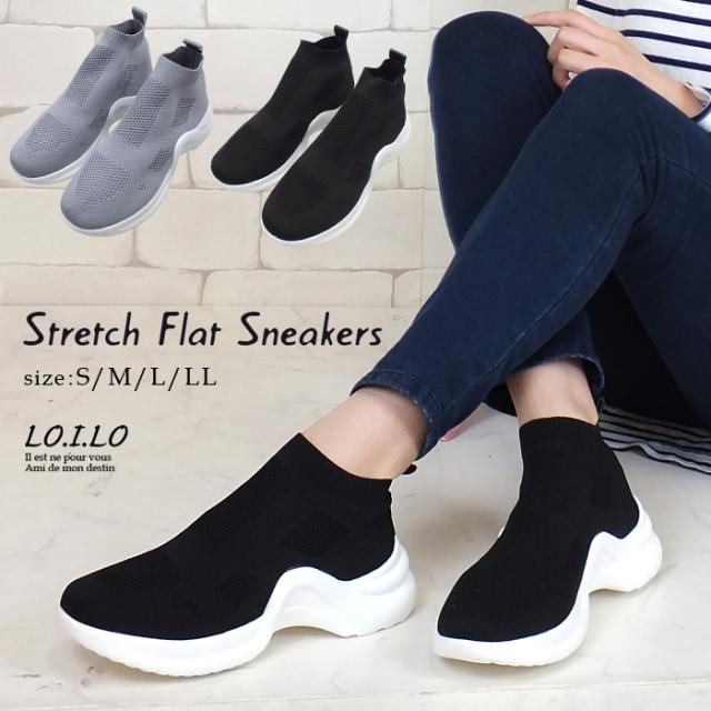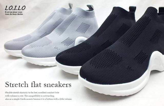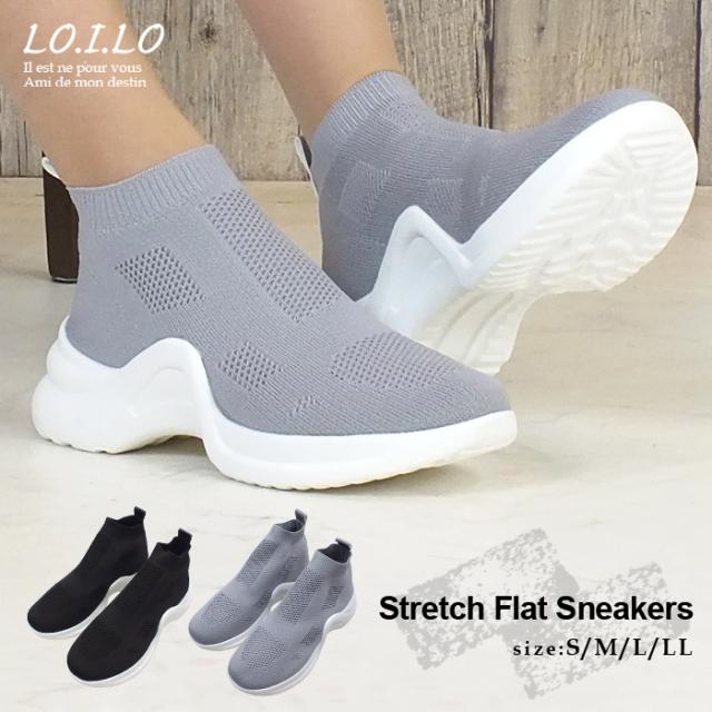 LO.I.LO-ロイロ- 斬新なデザインでお洒落に差がつくストレッチ性抜群で生地が伸びるフラットスニーカー。通気性もあり楽ちんなのに抜け感のあるオシャレスニーカー。レディース ダッドスニーカー ハイカット 厚底 軽い 軽量 靴 婦人靴