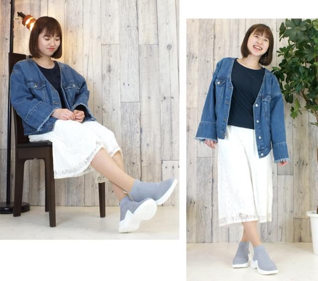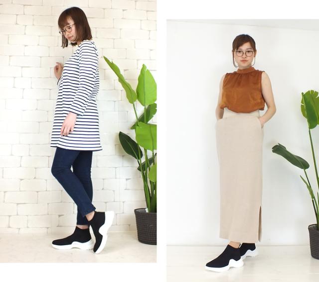 ベーシックに使いやすく、きゅっとストレッチの効いているスニーカーなのでマキシ丈のスカートやワンピースとの相性も◎