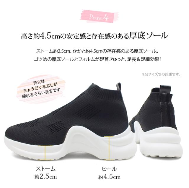 ゴツめの厚底ソールとフォルムが足首きゅっと、足長&足細効果