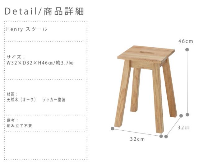 Henry ヘンリー スツール (イス 椅子 腰掛け 天然木 木製 北欧 オーク材 ナチュラル おすすめ おしゃれ)