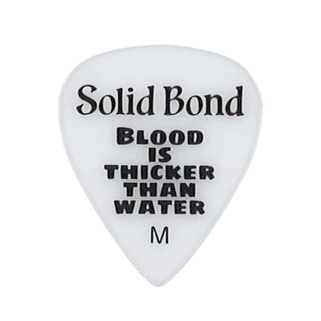 Solid Bond のロゴと「血は水より濃い」という意味で人と人との深いつながりを表した”Blood is Thicker Than Water”の文字がデザインされたピックです。