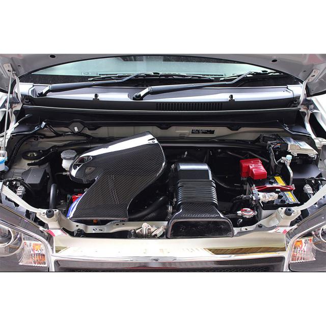 インダクションボックスのアッパーにカーボンファイバーを使用することで、強度と軽さを確保するとともに、レーシーなエンジンルームを演出します。