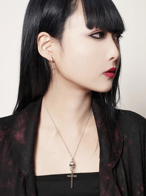 [APPAREL]/セックスポットリベンジ/SKULL CROSS ネックレス レッドEYE (F) ゴスロリ・パンク/SEX POT ReVeNGe