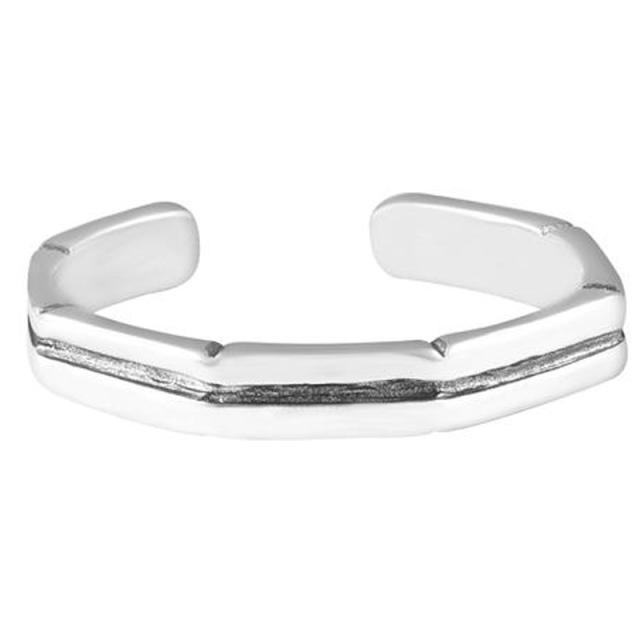 シンプルな細身のスリムなフリーサイズのシルバーリングを八角形にしてボルトナットのようにした足の指輪トーリング。